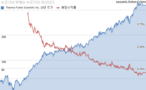 써모피셔 사이언티픽 배당수익률 및 주가 차트 (2010년~2021년)