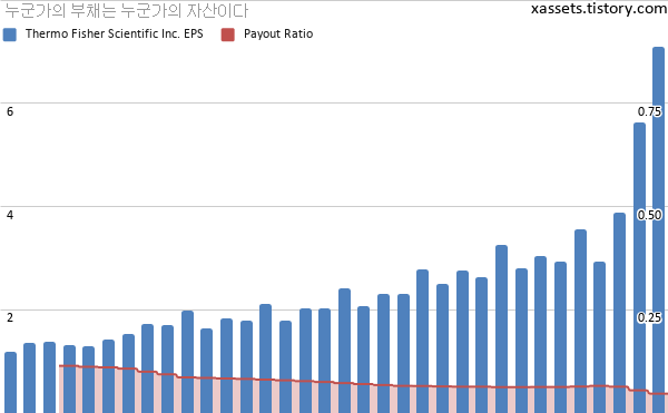 써모피셔 사이언티픽 EPS 및 배당성향 차트 (2013년~2021년)