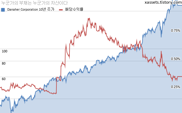 다나허 배당수익률 및 주가 차트 (2010년~2021년)