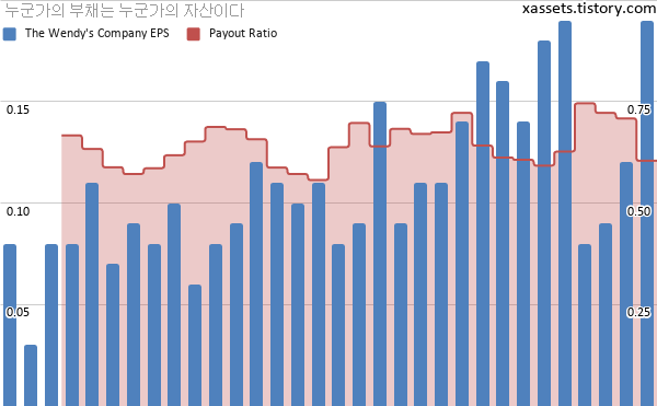 웬디스 EPS 및 배당성향 차트 (2013년~2020년)