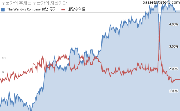웬디스 배당수익률 및 주가 차트 (2010년~2021년)