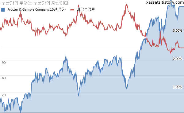 프록터앤갬블 배당수익률 및 주가 차트 (2011년~2021년)