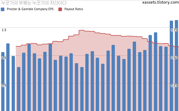 프록터앤갬블 EPS 및 배당성향 차트 (2013년~2021년)