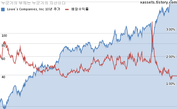 로우스 배당수익률 및 주가 차트 (2011년~2022년)