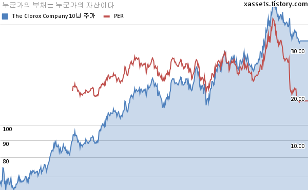- 크로락스는 생활용품 회사답게 PER도 일전한 구간에서 움직이고 있던 게 보인다. 최근에 큰 변화가 좀 보이는데, 1회성에 가까워서 다시 예전 추세로 돌아갈 것으로 생각된다.