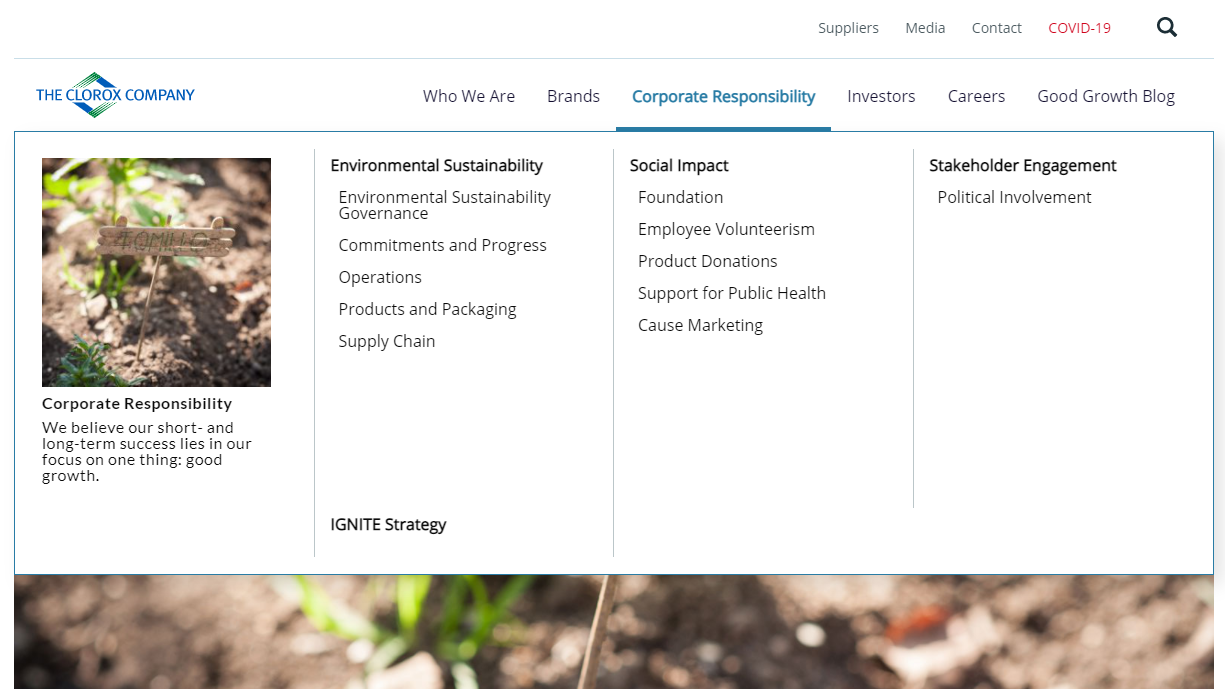 - 웹사이트도 깔끔하고 보기 쉽게 구성되어 있다. 생활용품을 공급하는 회사라서 그런지 대메뉴에 브랜드를 별도로 배치한 모습이 보인다. 전체적으로 보면 ESG에 충분히 신경 쓰고 있는 것으로 보인다.