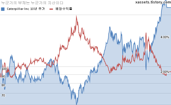 - 포스팅일 기준, 캐터필러의 1, 3, 5, 10년 연평균 주가상승률은 78.42%, 15.78%, 25.96%, 9.65%이다.