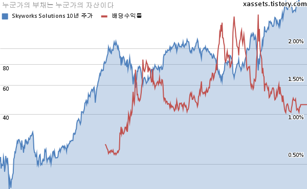 스카이웍스 솔루션스 배당수익률 및 주가 차트 (2011년~2021년)