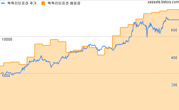맥쿼리인프라 주가-배당금 차트 (2021년 8월)