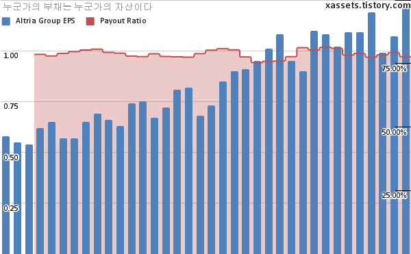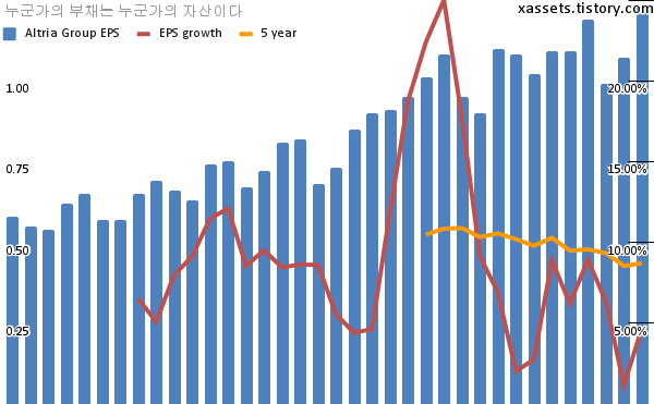 - 포스팅일 기준, 알트리아 그룹의 1, 5년 연평균 EPS 성장률은 4.67%, 8.72%이다.