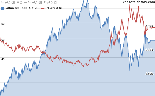 알트리아 그룹 배당수익률 및 주가 차트 (2011년~2021년)
