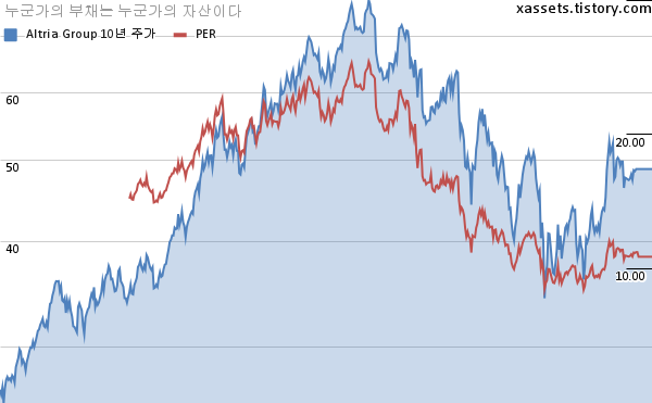 - 포스팅일 기준, 알트리아 그룹의 1, 3, 5, 10년 연평균 주가상승률은 12.17%, -6.05%, -5.83%, 6.20%이다.