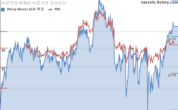 - 포스팅일 기준, 필립모리스의 1, 3, 5, 10년 연평균 주가상승률은 27.01%, 9.15%, 0.86%, 4.92%이다.