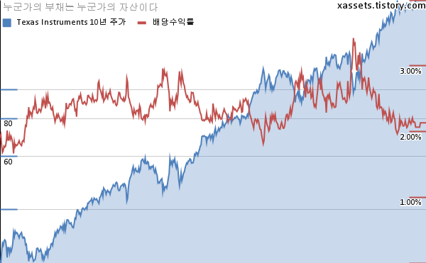 텍사스 인스트루먼트 배당수익률 및 주가 차트 (2011년~2021년)
