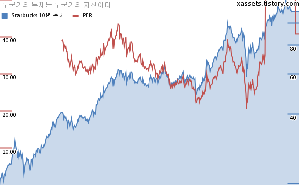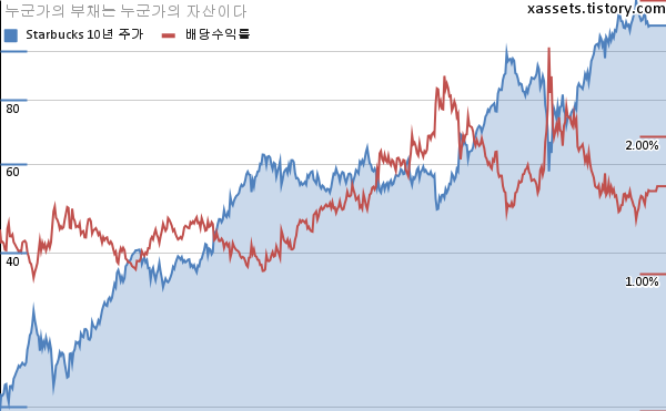 스타벅스 배당수익률 및 주가 차트 (2011년~2021년)
