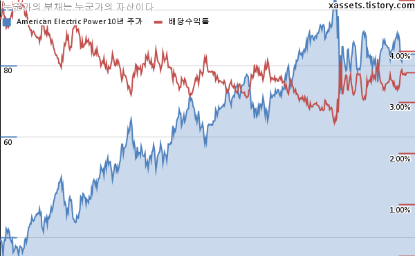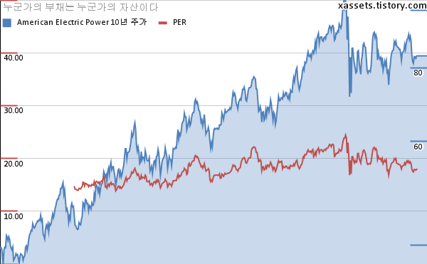 아메리칸 일렉트릭 파워 배당수익률 및 주가 차트 (2011년~2021년)