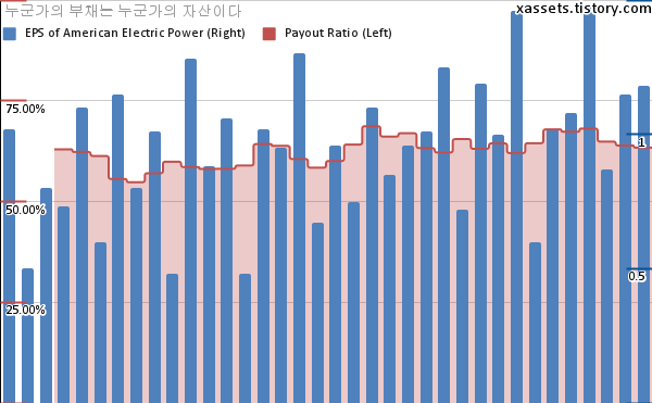 아메리칸 일렉트릭 파워 EPS & 성장률, 배당성향 차트 (2012년~2021년)