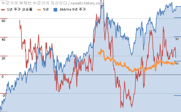 - 포스팅일 기준, 애브비의 1, 3, 5년 연평균 주가상승률은 28.87%, 11.29%, 14.37%이다.