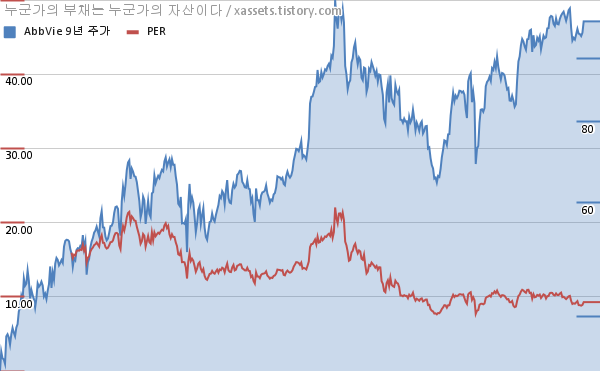 애브비 PER 차트 (2013년~2021년)