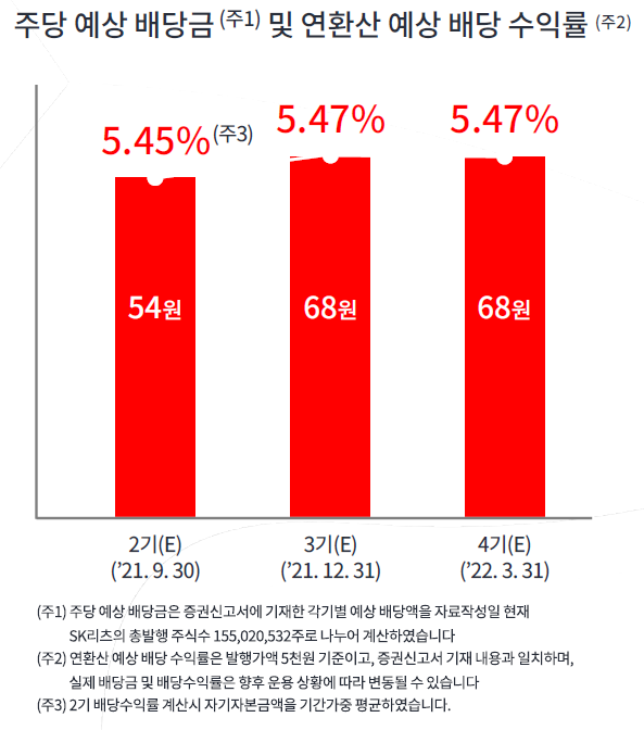 SK리츠 공식 사이트에 가면 공시자료 부분에 "2021년 하반기 REITs Corporate Day IR 자료"라는 이름으로 자료가 하나 올라와 있다. ( 바로가기 http://www.skreit.co.kr/info/page03.php ) 여기에 위의 내용이 있다.