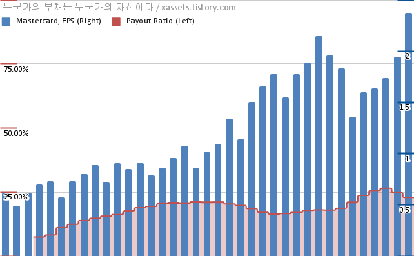 - 마스터카드는 2012년부터 11년 연속으로 배당금을 증액하고 있다.