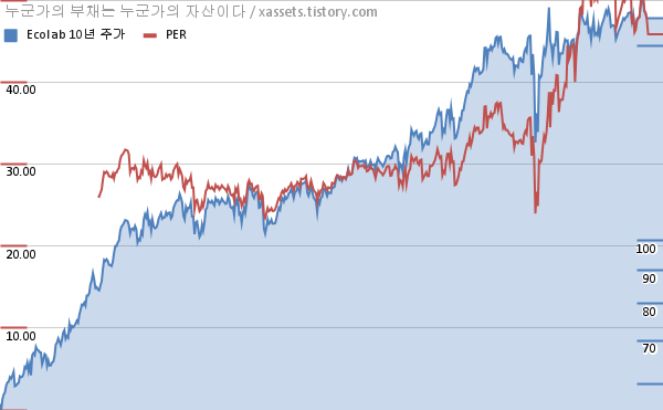 에코랩 PER 차트 (2012년~2021년)