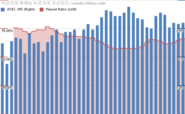 AT&T EPS & 성장률, 배당성향 차트 (2012년~2022년)