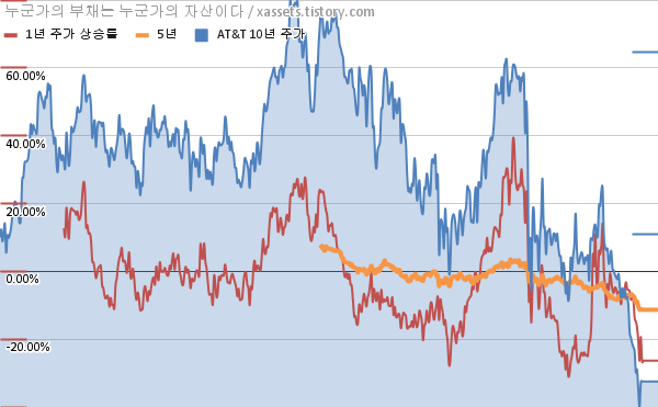 - 포스팅일 기준, AT&T의 1, 3, 5, 10년 연평균 주가상승률은 -19.35%, -5.74%, -11.11%, -2.40%이다.