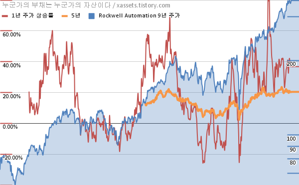 - 포스팅일 기준, 로크웰 오토메이션의 1, 3, 5, 10년 연평균 주가상승률은 39.09%, 32.45%, 20.29%, 15.92%이다.