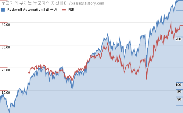 로크웰 오토메이션 PER 차트 (2012년~2021년)