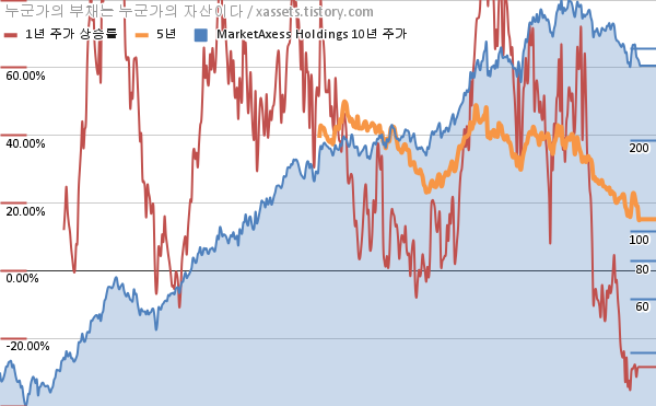 - 포스팅일 기준, 마켓액세스 홀딩스의 1, 3, 5, 10년 연평균 주가상승률은 -28.47%, 18.44%, 15.18%, 26.64%이다.