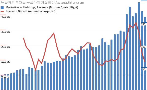 마켓액세스 홀딩스 매출 및 매출성장률 차트 (2012년~2022년)