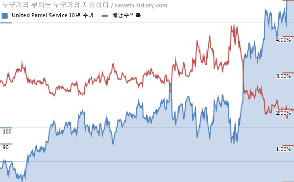 - UPS는 2010년부터 13년 연속으로 배당금을 증액하고 있다.