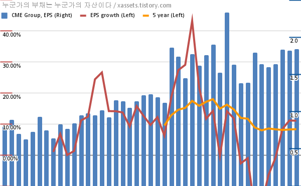 - 포스팅일 기준, 시카고 거래소 그룹의 1, 5년 연평균 EPS 성장률은 11.06%, 8.33%이다.