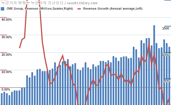 시카고 거래소 그룹 매출 성장률 차트 (2005년~2021년)