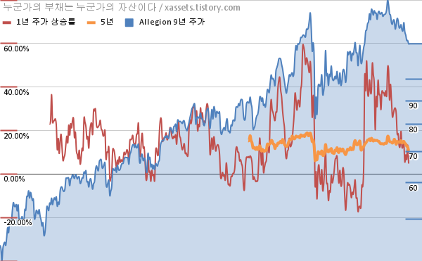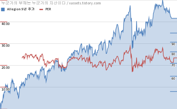 - 얼리전 Allegion 배당금 증액 차트 리스트