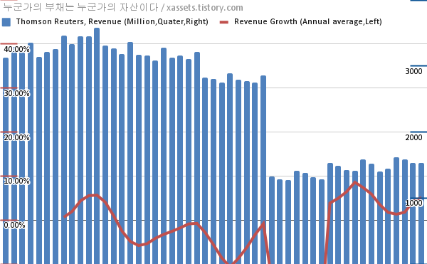 톰슨 로이터 매출 성장률 차트 (2009년~2021년)