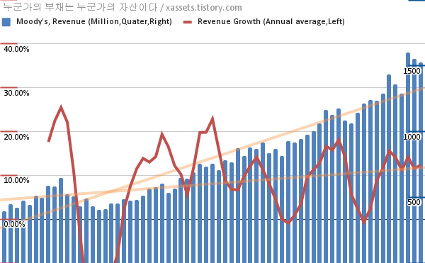 - 무디스의 매출 성장도 꽤 안정적이다.