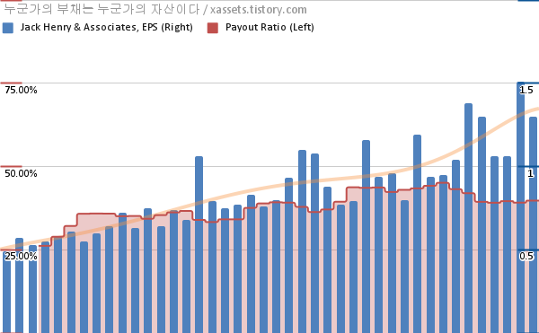 잭 헨리 앤 어소시에이츠 EPS 성장률, 배당성향 차트 (2012년~2022년)