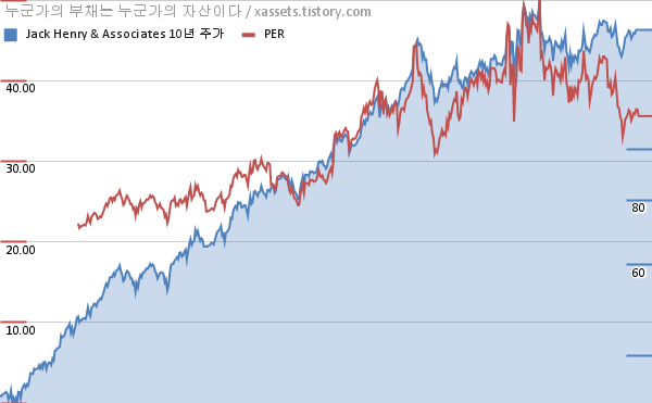 잭 헨리 앤 어소시에이츠 PER 차트 (2012년~2022년)