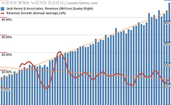 잭 헨리 앤 어소시에이츠 매출 성장률 차트 (2005년~2021년)