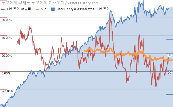 - 포스팅일 기준, 잭 헨리 앤 어소시에이츠의 1, 3, 5, 10년 연평균 주가상승률은 14.95%, 7.76%, 12.59%, 17.41%이다.