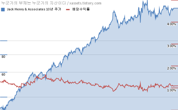 잭 헨리 앤 어소시에이츠 배당수익률 및 주가 상승률 차트 (2012년~2022년)