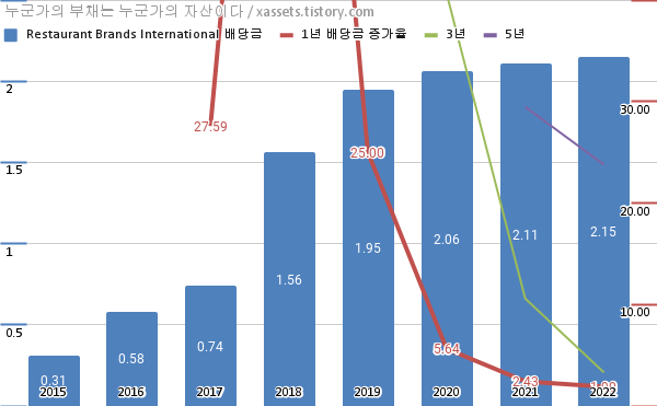 레스토랑 브랜즈 배당금 및 배당성장률 차트 (2015년~2022년)