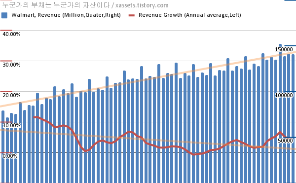 - 월마트는 매출 성장도 꾸준하다. 온라인 경쟁자들과 어떻게 경쟁해야 하는지 차츰 알아가고 있는게 아닌가 싶다.
