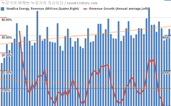 넥스테라 에너지 매출 성장률 차트 (2005년~2021년)