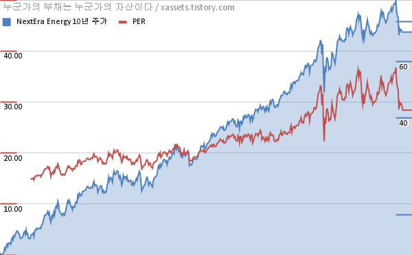 넥스테라 에너지 PER 차트 (2012년~2022년)