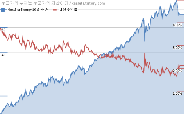넥스테라 에너지 배당수익률 및 주가 상승률 차트 (2012년~2022년)