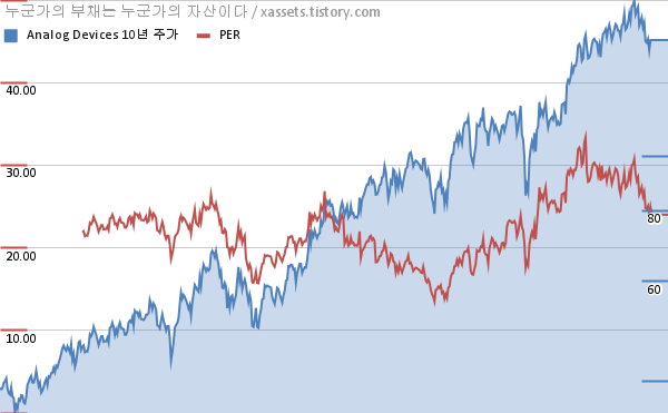 아날로그 디바이스 PER 차트 (2012년~2022년)