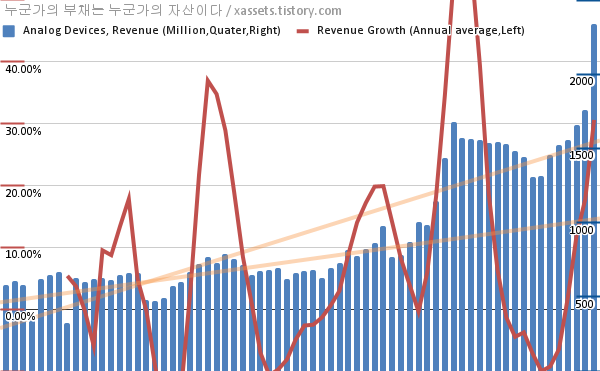 아날로그 디바이스 매출 성장률 차트 (2005년~2021년)